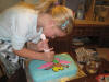 Eloise gave me a hand decorating Abby's birthday cake. I did the edges and she filled in areas. |