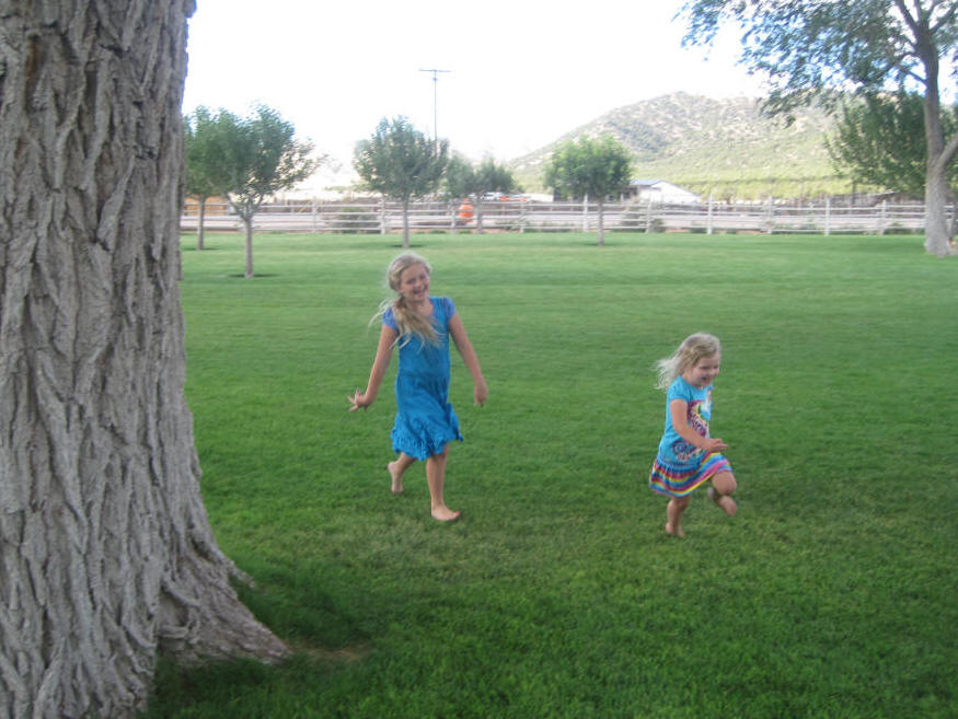 I love this picture... two happy girls running in the grass on a summer afternoon. |