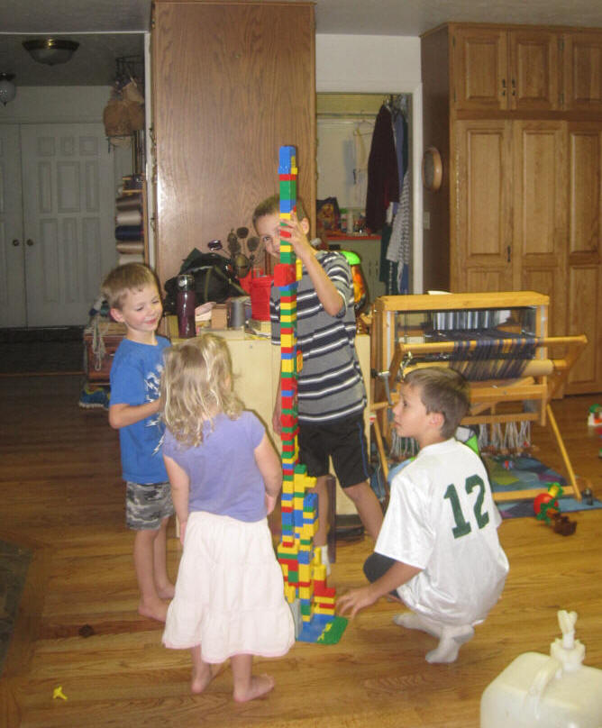 Back at Grandma's house and working on the tallest lego tower ever. |