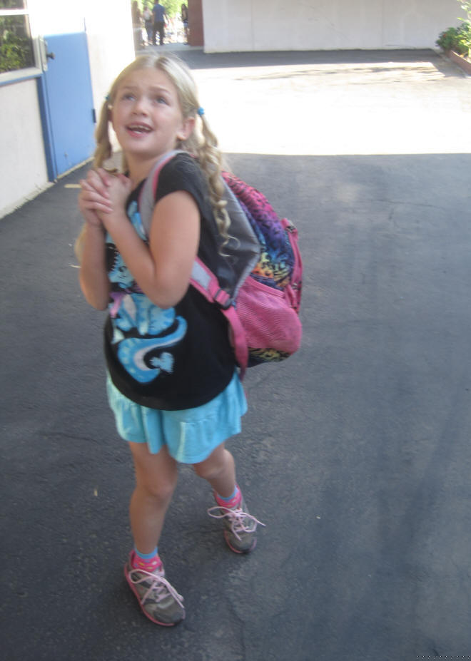 Thrilled with her curls, excited to see her friends and meet a new teacher. |