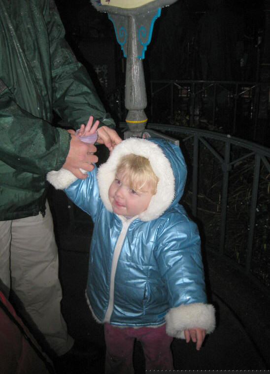 Abby tried out the Matterhorn. Here she is measuring up to get on the ride. |